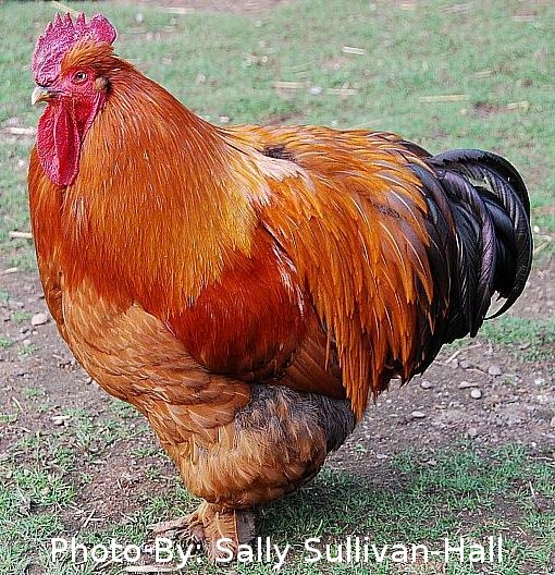 Comb – Both the male and female have a bright red single comb. The male has a medium-size five point comb and the female a rounded come which is quite small.