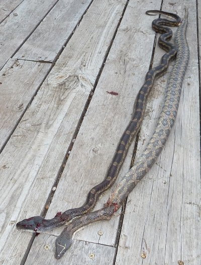 Along with many of the other comments, I disagree with the killing of the snakes. Snakes are a very, very important part of our ecosystem. Rat snakes in particular are very valuable in keeping the mouse and rat population at bay.