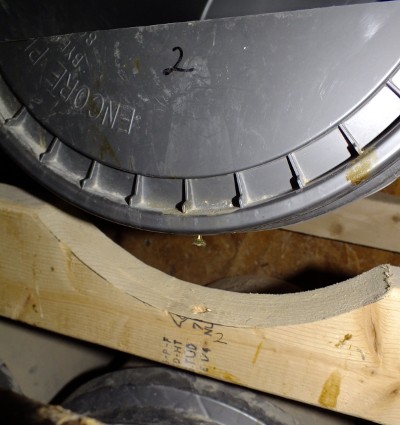 In the new coop I made one adjustment in that I took pail lids and cut the lid in thirds and put them on the front of the bucket so that it keeps the shavings in better.