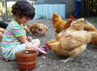 Our daughter enjoys our Buff Orpingtons. She has helped raise them from the time they arrived in the mail. Gathering their eggs is like a treasure hunt for her. Each egg she finds brings her pride and excitement. As you can see, the Buff Orpingtons are gentle enough for her to feed out of her hand.