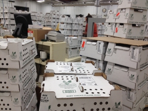 So how do you fill nearly 2000 orders comprised of 25 chicks or more, of various breeds, in each order? Very carefully. Murray McMurray Hatchery has been filling baby chicken orders since 1917. To say they have it down to a science is an understatement. A science, with a little bit of luck. You have to keep in mind, orders are filled while hatching continues to happen! What we have to fill orders with solely depends on how well the eggs hatch. Each chick type is categorized, each order is separately printed, each worker has an access badge that allows them to take out each chick type they need, etc. Each box has a couple of scoops of grow gel that is filled with vitamins and electrolytes to ensure the chicks don’t go hungry as well. And when there is a question, veteran employees are quick to help as they are working side by side with the rookies to ensure each order is accurately filled. It is a process that is extremely unique and perplexing at the same time. Thanks to some very knowledgeable computer programmers, dedicated management and caring employees, all orders are filled quickly, efficiently and accurately. At the helm of the hatch is Kent, a long time employee of Murray McMurray Hatchery. Kent oversees the newly hatched eggs, enters the inventory levels, marks what orders can be filled, and keeps the general process flowing. In the midst of what can become a very stressful ordeal, Kent maintains his energy and smile, knowing what this night is all about – happy customers and healthy chicks. Quality controls are set in place to visually verify each order filled and then it’s off to one of the six possible trucks. Most chicks will catch a plane, catch a nap at a local post office overnight, and then be welcomed with smiling faces at your home.